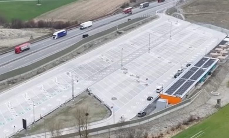 10 locuri de parcare sunt prevăzute ca spații de încărcare pentru camioane electrice. Opt dintre acestea sunt prevăzute cu stații de 150 kW, pentru încărcare peste noapte, iar celelalte două cu prize de 350 kw, pentru încărcări rapide.
