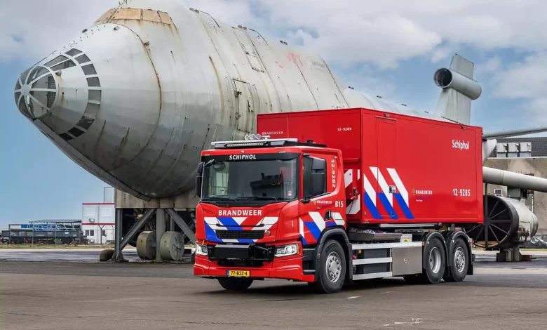 Aeroportul Schiphol utilizează autospeciale electrice de pompieri Scania 23P în cadrul operațiunilor logistice și intervențiilor pe platforma aeroportuară.