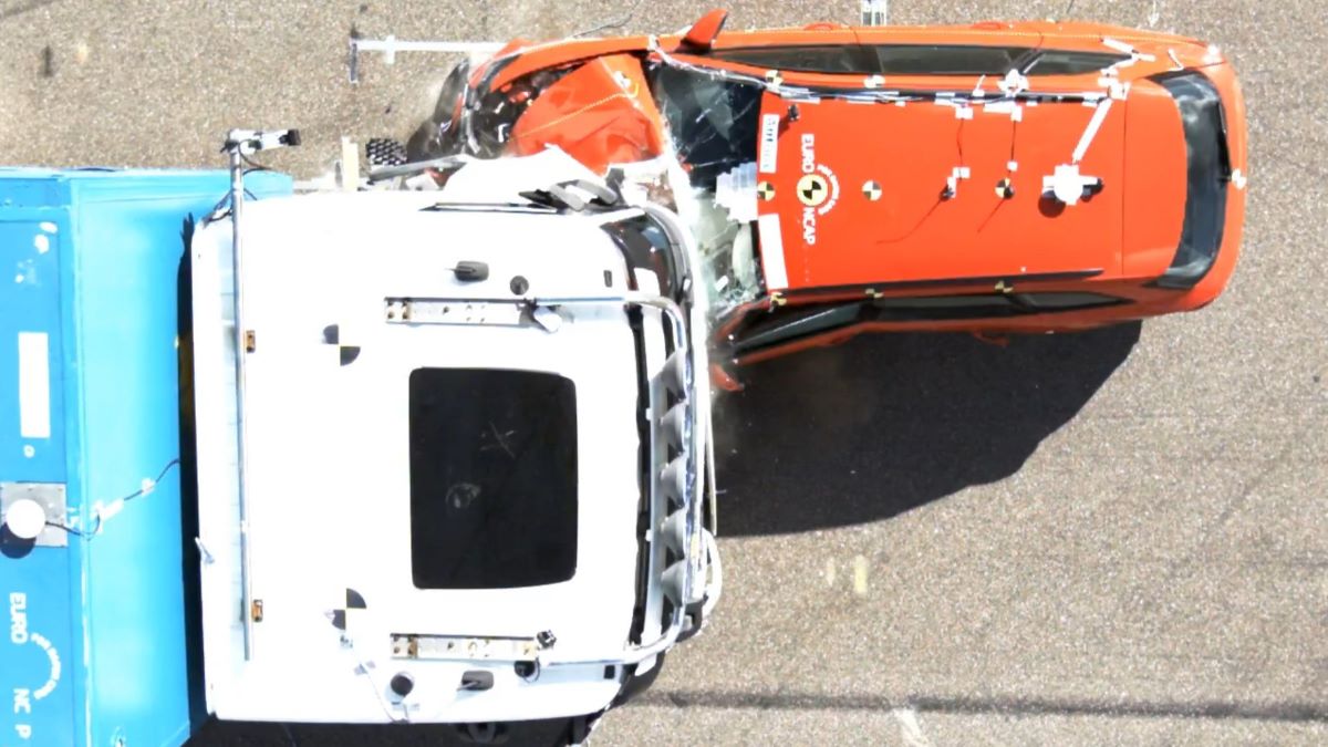 Testul de impact cu un autoturism modern a avut loc cu ambele vehicule la 50 km/h, dar a simulat o viteză originală de 80 km/h, redusă cu 30 km/h de sistemele automate de frânare de urgență ale camioanelor și autoturismelor mai noi. Mai jos puteți vedea efectele impactului cu și fără noua bară de protecție față asupra compartimentului pentru pasageri al autoturismului.