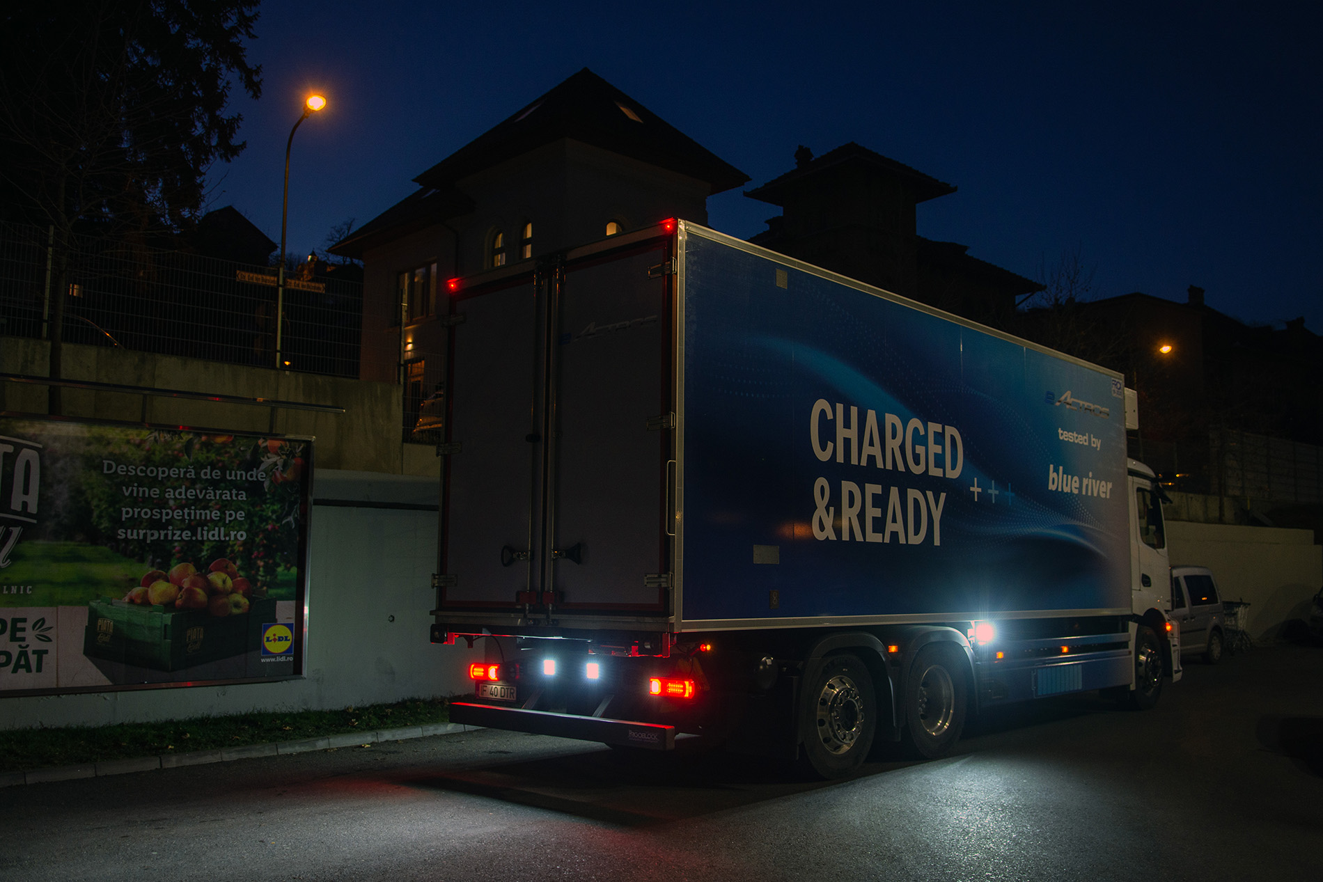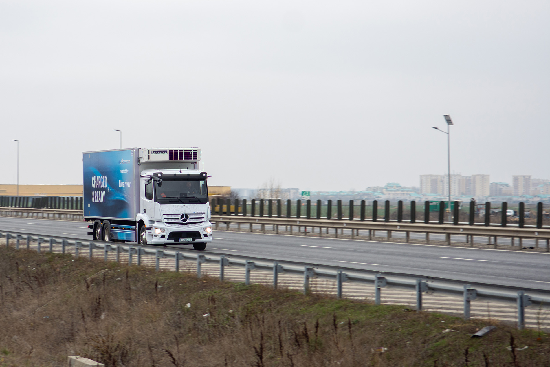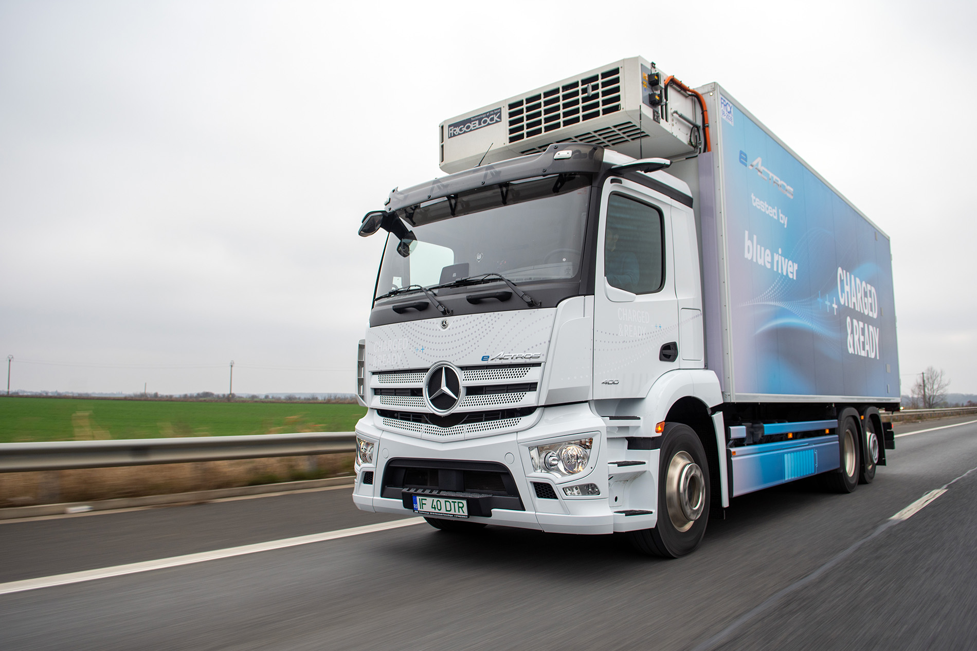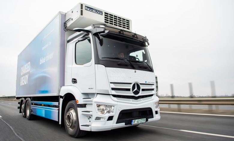 Testul, realizat împreună cu Blue River și Daimler Truck & Bus Romania, a avut în centru un model Mercedes-Benz eActros 400 de 27 de tone, cu autonomie de până la 400 km, intrat între timp în flota companiei de transport. Alegerea a fost oarecum simplă: dintre cele 5 camioane electrice înmatriculate până acum în România, din care trei au fost achiziționate de Blue River, acesta are cea mai mare autonomie potențială.