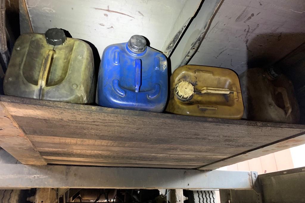 La o verificare mai atentă, aceștia au descoperit o podea falsă sub platforma semiremorcii. Aici au descoperit mai multe canistre interconectate pline cu motorină. În plus, agenții au descoperit și două pompe acționate electric, conectate la o serie de furtune, plus mai multe duze de prindere, acestea fiind tipice pentru sistemele folosite de hoți pentru a fura motorină din alte camioane.