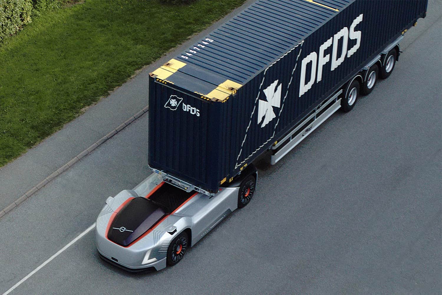 Camionul fără cabină, electric și autonom a celor de la Volvo Trucks face parte dintr-o soluție integrată de transport a containerelor de la un centru logistic al DFDS către un terminal de containere al portul Göteborg.
