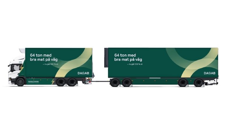 Acum, parteneriatul dintre Scania și Dagab va fi extins cu o combinație electrică pentru transport frigorific de 64 de tone. Camioanul va fi alimentat doar cu electricitate ”verde”.