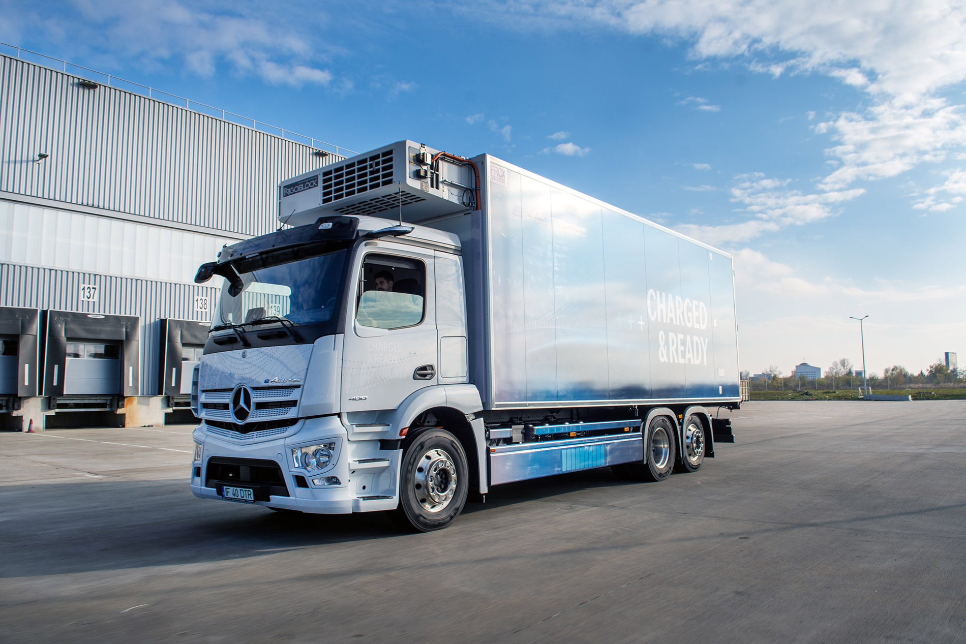 eActros 400 cu trei axe și 27 de tone este carosat cu suprastructură frigorifică și agreagat frigorific cu recorder de temperatură. Suprastructura beneficiază de scară de acces retractabilă și de un perete despărțitor COOL SLIDE, cu trei elemente de etanșare magnetică, a cărui poziție poate fi modificată prin glisarea pe șina de la nivelul acoperișului.