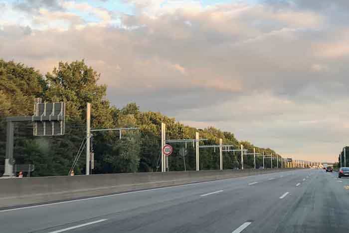 Odată cu instalarea liniilor aeriene de contact, lucrările de construcție la primul segment de autostradă electrificată din Germania între Frankfurt și Darmstadt pe A5 au intrat în faza finală, a anunțat pe 8 august 2018 Ministerul Transporturilor din Wiesbaden.