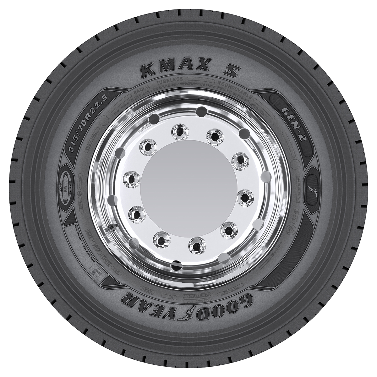 Gama Goodyear KMAX GEN-2 cuprinde 9 dimensiuni de tracțiune KMAX S GEN-2 și 7 dimensiuni de direcție KMAX D GEN-2.