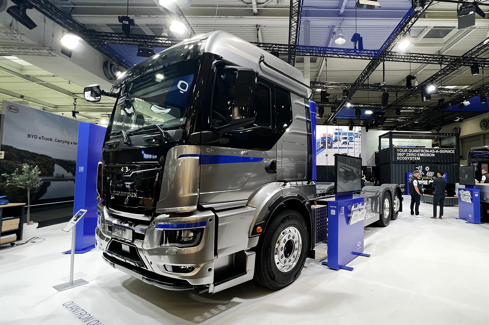 O altă premieră mondială a QUANTRON la IAA 2022 a fost platforma QHM BEV. Modelele disponibile sunt capul tractor Quantron QHM BEV 44-400 și șasiul QHM BEV 27-400. Pachetele de baterii cu capacitate de până la 392 kWh pot fi încărcate la puteri de până la 350 kW, iar autonomia operațională ajunge până la 350 km. Gama Quantron QHM BEV este deja disponibilă pentru comenzi.