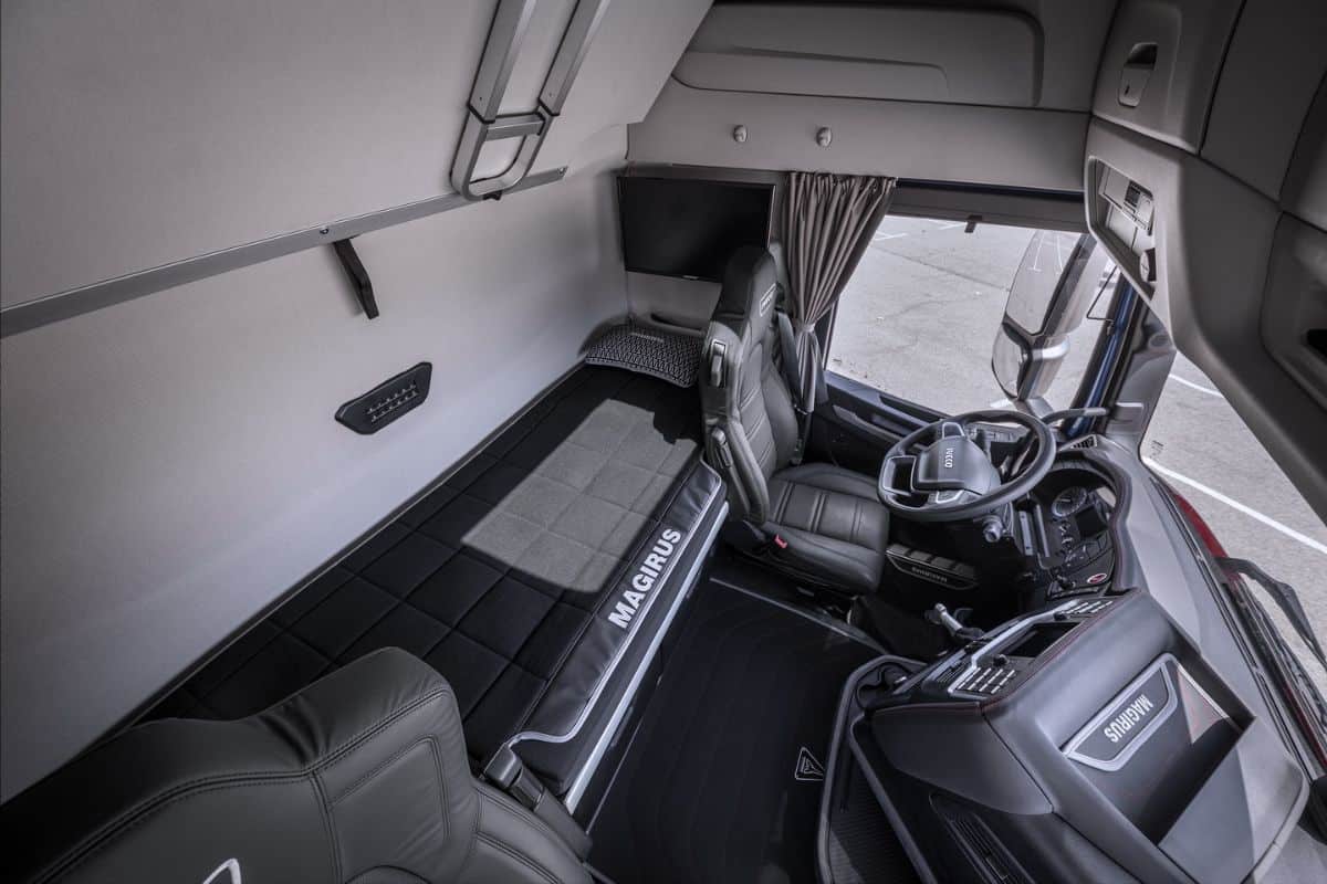 Suplimentar, producătorul italian propune și un kit aerodinamic care include fuste laterale și extensii din cauciuc menite să „închidă” spațiul dintre cabină și semiremorcă.