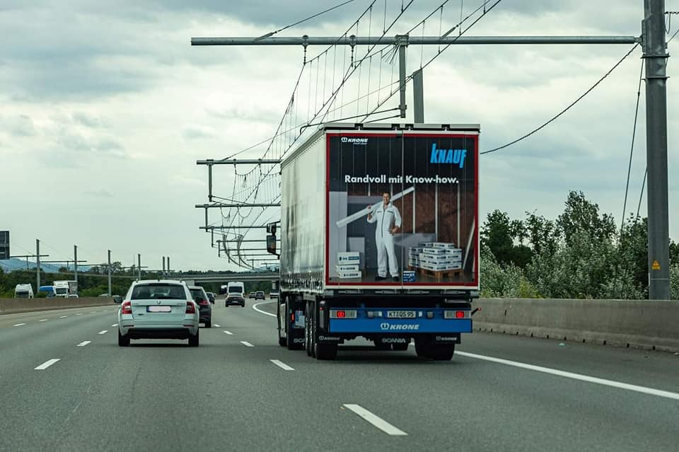 După ce la începutul lunii iulie, grupul Merck a inclus în flota sa de camioane un Scania R 450 Hybrid cu pantograf, care va fi utilizat în transportul de farmaceutice pe secțiunea electrificată de pe A5, din Germania, în această săptămână a primut camionul de test și compania Knauf.