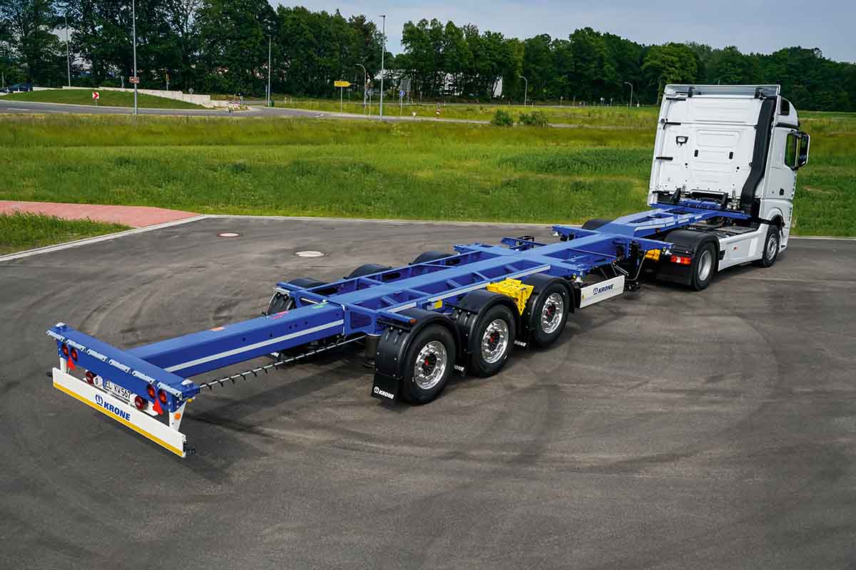 Pentru noul concept de șasiu optimizat al remorcii, Krone se bazează pe construcția de cadru scără cu grinzi longitudinale continue și grinzi profilate sudate.