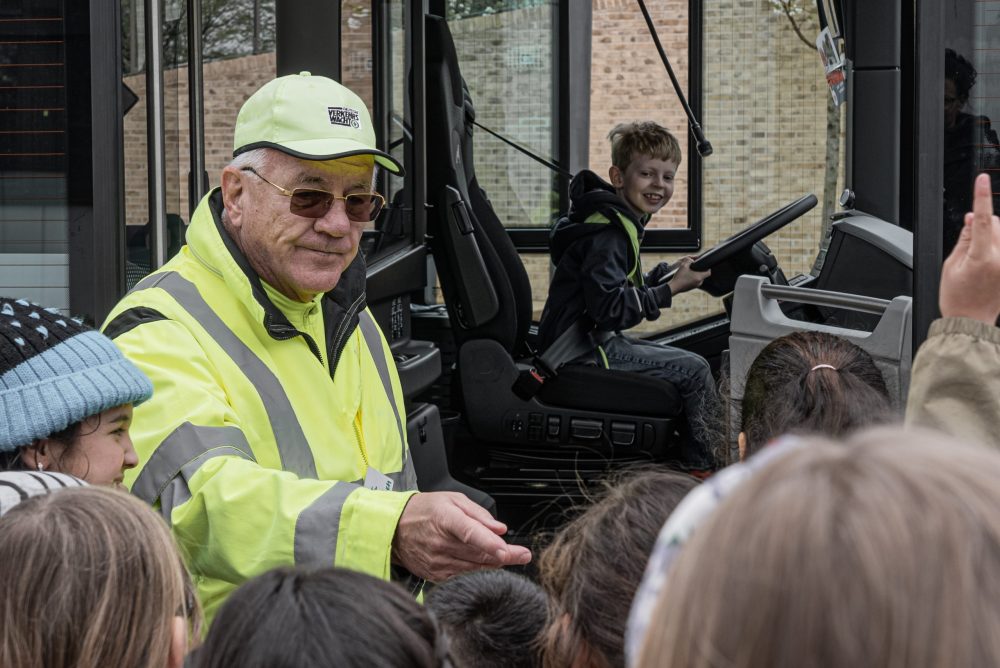 ”Am folosit și o prelată triunghiulară pentru a le arăta copiilor care este punctul orb al unui autobuz. Este important ca elevii să realizeze cât de limitată este vizibilitatea șoferilor și că o întreagă clasă poate dispărea în punctul orb. Atenția elevilor este mult mai mare și ei pot asimila mai bine noile cunoștințe atunci când le pot experimenta în realitate”, spune Degenhart. Copiii au fost învățați de asemenea cum să aștepte autobuzul, cum să se alinieze pentru urcare și la ce să se uite atunci când autobuzul ajunge în stație.