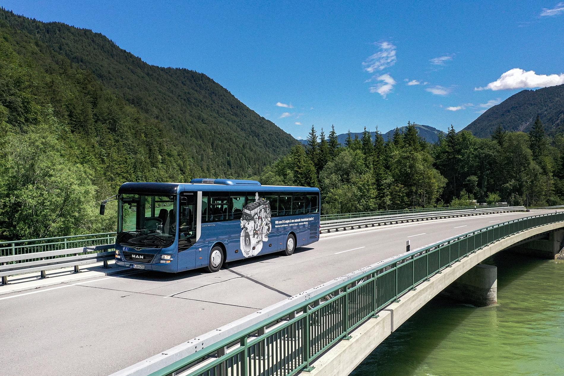 Cu atât de multe variante de motoare, autobuzul interurban de la MAN este perfect și pentru curse pe un teren cu o topografie mai solicitantă. O eficiență sporită este asigurată și de faptul că pompa de răcire sau noile alternatoare cu LIN sunt controlate în funcție de solicitările la care este supus vehiculul.