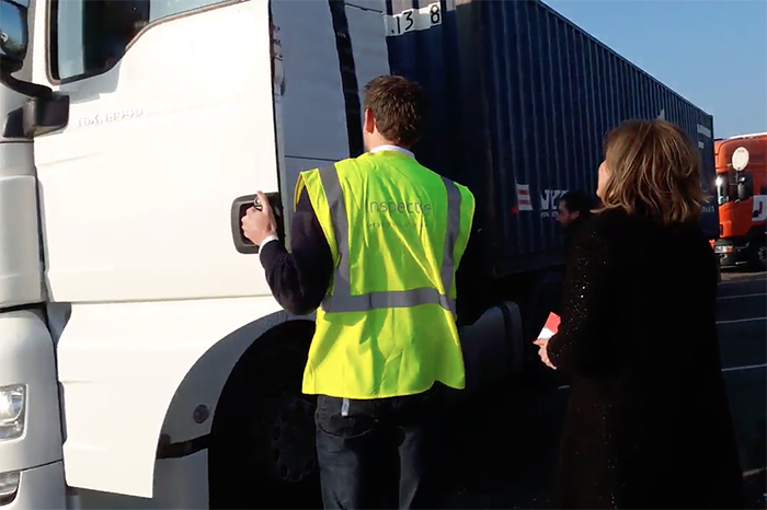 Ministrul transporturilor din Olanda, Cora van Nieuwenhuizen, alături de alte autorități ale statului au împărțit pliante de informare, privind interzicerea repausului săptămânal normal în cabină.