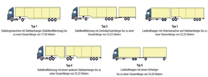 Camioanele extra-lungi sunt clasificate în Germania în 5 tipuri (Typ), conform imaginii de mai jos: