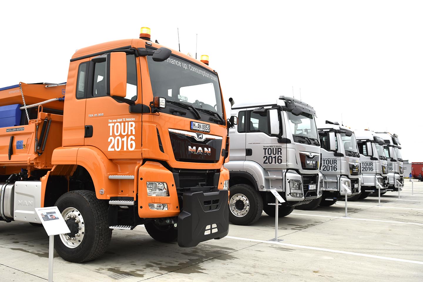 În cadrul MAN Tour 2016, cele 12 camioane MAN TGX, TGS, TGM și TGL au reușit să-i impresioneze pe cei peste 4.600 de clienți și colaboratori prezenți în ambele locații, atât prin design cât mai ales cu performanța noilor motoare și cutii de viteze, ce oferă un consum redus de carburant și mai multă putere. O confirmare în acest sens este faptul că noua generație MAN TGX EfficientLine 3 consumă cu 6.35% mai puțin combustibil decât generația precedentă, lucru confirmat de cei de la TUV într-un test comparativ.