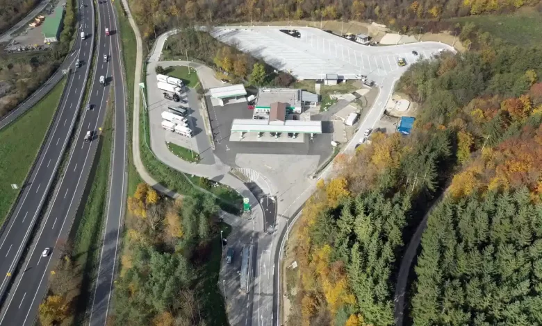Noua parcare pentru camioane de pe A21 oferă 42 de locuri de parcare, facilități sanitare și locuri de relaxare.