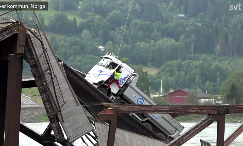 Alarma privind prăbușirea podului a fost primită de poliție la ora 07.34, dimineața. La ora 08.20, poliția a declarat presei norvegiene că șoferii celor două mașini au fost preluați și că se simt bine în aceste condiții.