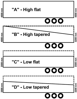 În pozițiile B (High tapered) și C, acoperișul este conic și spatele este coborât la înălțimea totală de 3200 mm. În aceste cazuri, partea frontală nu este coborâtă (B), respectiv coborâtă pentru aproximativ 500 mm (C).