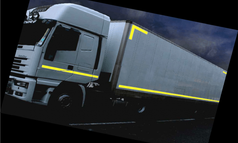 Banda reflectorizantă de contur Oralite, oferă o semnalizare corespunzătoare a camioanelor, mai ales pe timpul nopții.