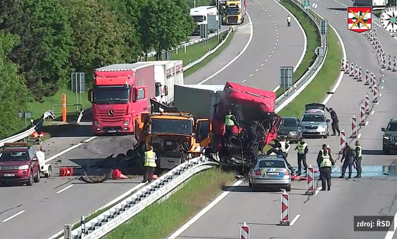 În această dimineață, în jurul orei 8:30, un camion înmatriculat în străinătate s-a ciocnit violent cu un alt camion oprit pe autostradă, la doar câțiva metri de un filtru al poliție de frontieră din Cehia.