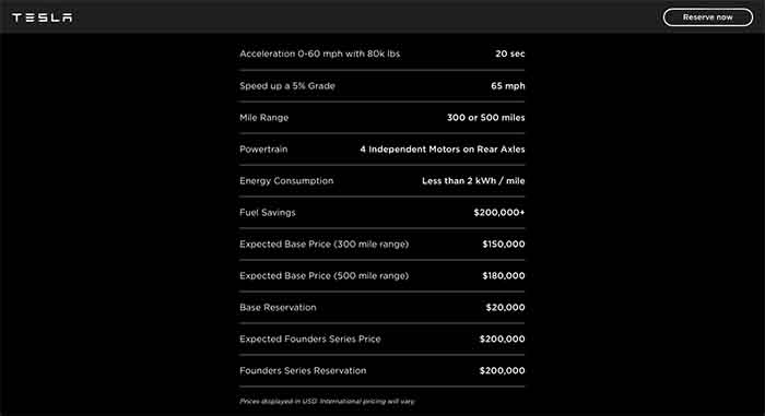 Pe 16 noiembrie 2017, atunci când fondatorul Tesla, prezenta cu surle și trâmbițe camionul electric al companiei și anunța că intenționează să înceapă vânzarea în 2019, uita să spună prețul.