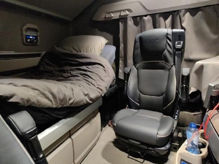 Iar noua regină a cabinelor europene este DAF XG+, la care vor visa toți șoferii care circulă în echipaj. Aceasta are o înălțime internă de 217 cm. Față de fostul Super Space Cab, înălțimea dintre paturi a scăzut cu 2 cm, dar spațiul disponibil până la tavan pe patul de sus este mai mare cu 5 cm. La fel ca la XG, patul nu mai atinge scaunele, iar opțiunea de pivotare transformă cabina într-un loc de odihnă spectaculos. În ciuda dimensiunilor impresionante, noul DAF XG+ are o greutate de doar 7.116 kg, cu doar 21 kg mai mult decât fosta Super Space Cab.
