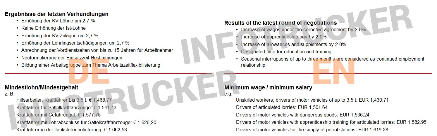 Ultimul contractul colectiv de muncă în transporturi a intrat în vigoare în Austria la 1 ianuarie 2015. În cadrul ultimei runde de negocieri a fost crescute: