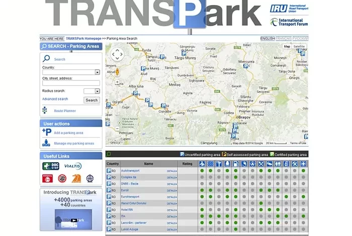 Mai mult de 3.000 de zone de staţionare pentru camioane sunt în prezent înregistrate în TRANSPark, din care 1.800 sunt geo-poziţionate. Numărul lor va creşte în continuare, pe măsură ce noile informaţii vor fi transmise de şoferi profesioniști care folosesc aplicația şi de responsabilii parcărilor, apoi verificate de autorităţile naţionale şi asociaţiile naţionale membre IRU pentru a le controla exactitatea.