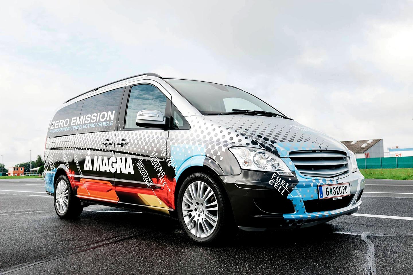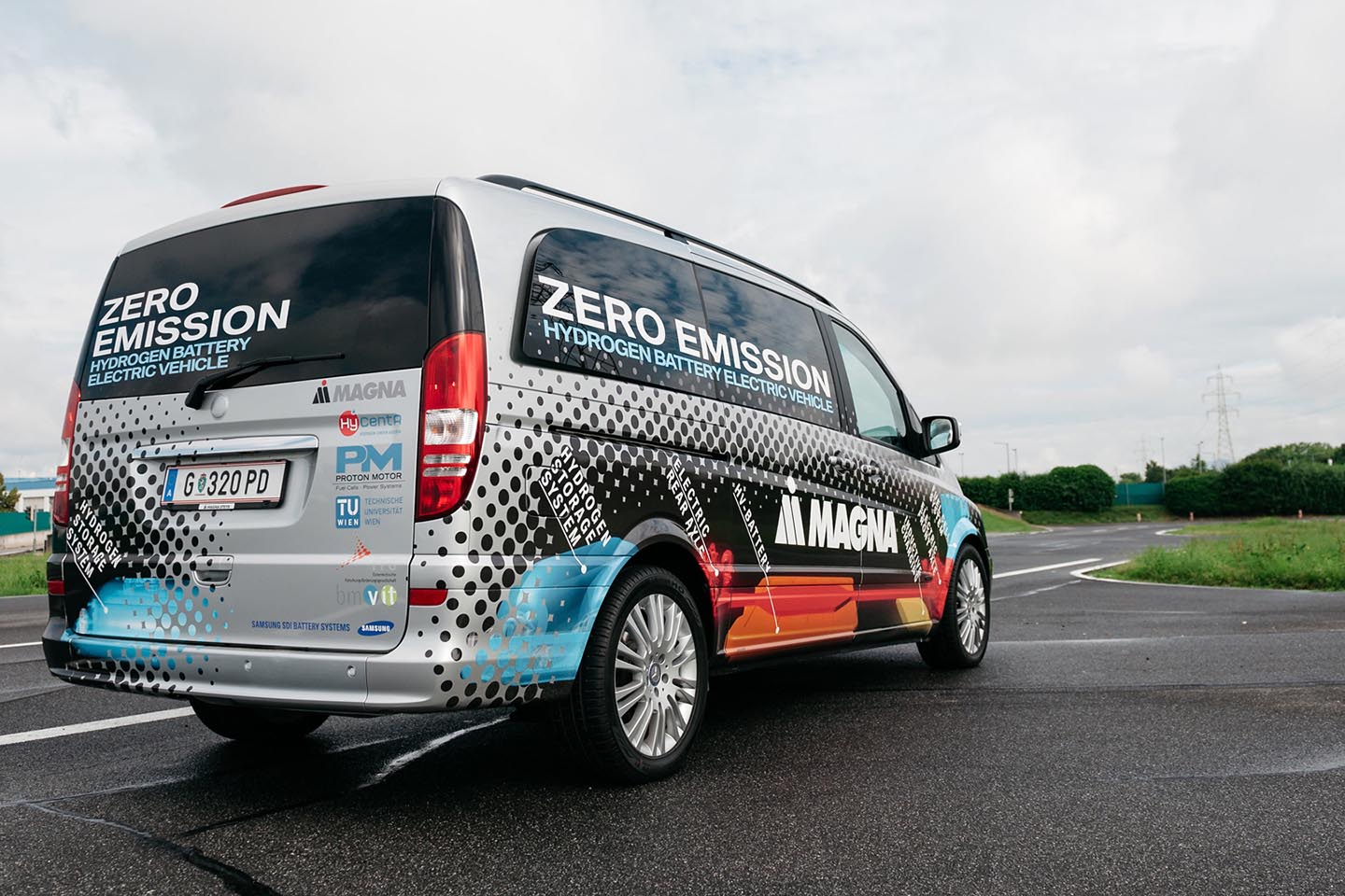 În cazul de faţă, spre exemplificare a fost ales un Mercedes-Benz Vito, care ajunge să parcurgă 90 km doar cu energia din baterii, iar dacă intră în funcţiune şi pila electrică (instalaţia de obţinere a curentului electric din hidrogen) autonomia creşte cu încă 500 km.