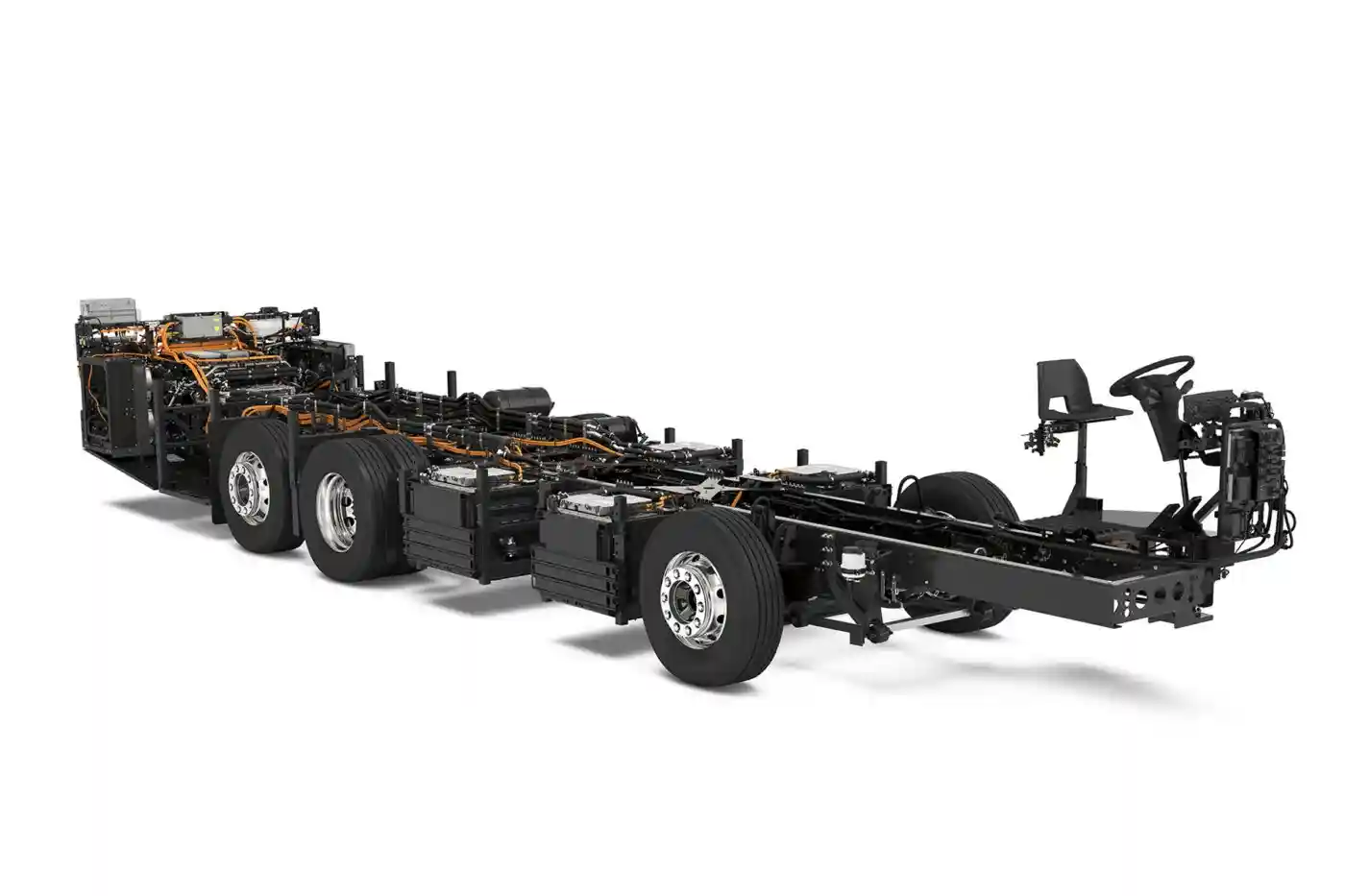 Configurabil cu între patru și opt module de baterii, ansamblul oferă o capacitate totală cuprinsă între 360 și 720 kWh și promite o autonomie de până la 700 de kilometri în ciclul SORT 3.