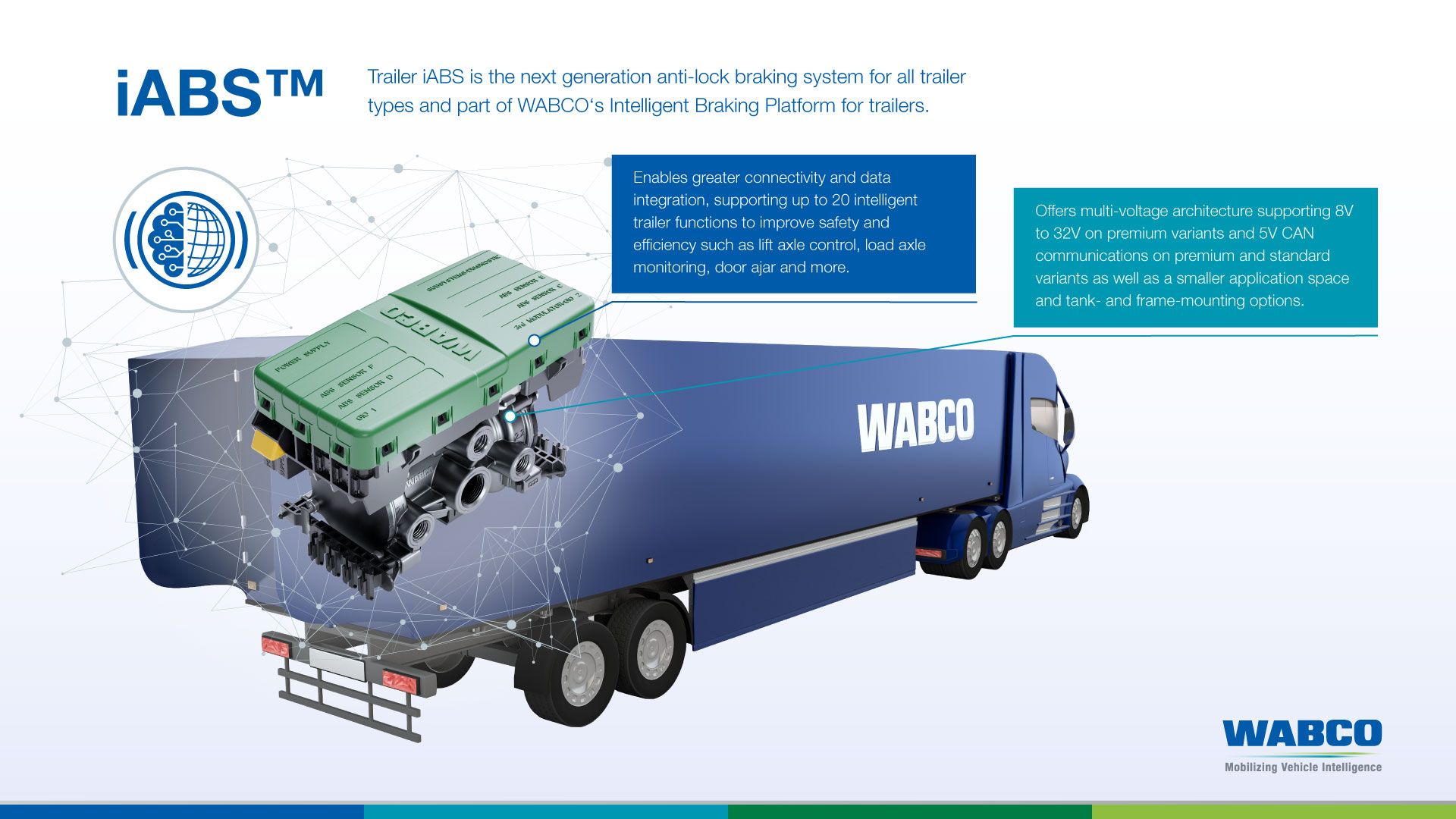iABS face parte din WABCO Global Intelligent Braking Platform care îmbunătățește funcționalitatea sistemului remorcii și sprijină strategiile producătorilor de astfel de vehicule pentru creșterea standardizării și a modularității.